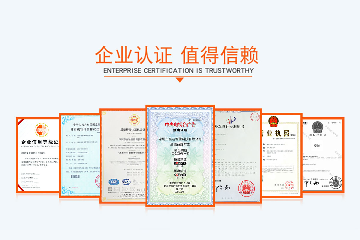 深圳市皇迪智能科技有限公司,是一家集產(chǎn)品研發(fā)、制造、銷售、安裝、售后于一體的全產(chǎn)業(yè)鏈公司,我司專注于酒店刷卡鎖、公寓藍(lán)牙密碼鎖、電子鎖、密碼鎖研發(fā),生產(chǎn),銷售.是國家高新技術(shù)企業(yè),公司已通過ISO9001/2015標(biāo)準(zhǔn)認(rèn)證,并擁有多項(xiàng)國家實(shí)用新型專利、外觀專利及計(jì)算機(jī)軟件著作權(quán); 皇迪玻璃門鎖廠家一直秉承“以顧客為中心,以人為本,長(zhǎng)期艱苦奮斗”的經(jīng)營理念,為全球每一位消費(fèi)者提供舒適,便捷,安全的高品質(zhì)生活。